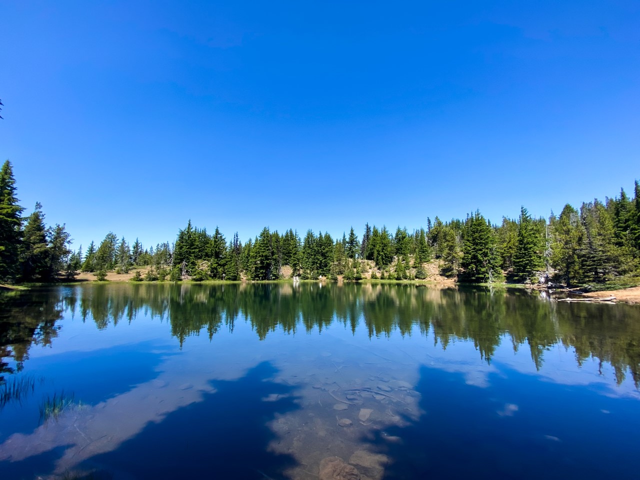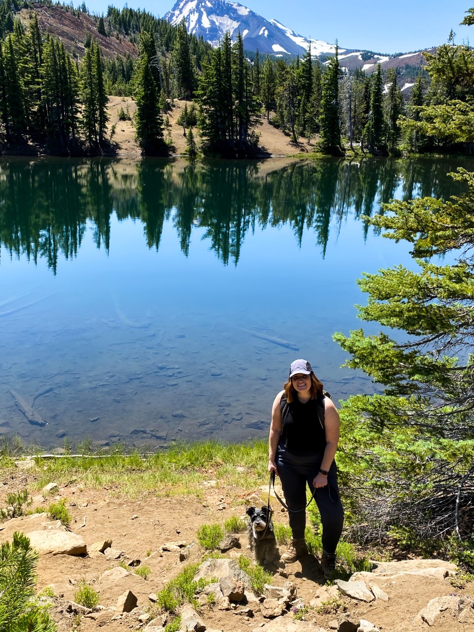 The hike started out by walking amongst burnt trees from a forest fire, but still beautiful in a strange way. We saw new growth in the midst of death, which is humbling and quite a magnificent sight of hope. There were some bugs, but this time I was prepared and brought bug spray, and they didn’t bother us much after we used it. This hike was unique in the sense that I felt we walked through so many different terrains, even though we didn’t, not really. We had burnt trees, ponds with a little foliage, heavily forested areas, lava beds, an alpine lake feel with the two lakes at the end, and mountain views. There was so much to see on this hike and it was a pleasure doing it with Keely, her puppy Penny, and Lexi. This was the beginning of hiking with our favorite pups. At the last lake we had lunch, enjoyed the monarch butterflies, birds, and views. On our way back down we ran into other hikers who informed us there was another way up and down, which we will try someday because it did sound appealing (just have to find it).