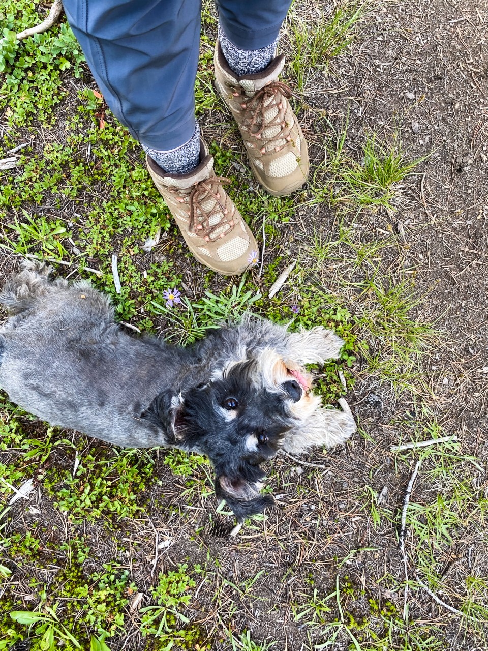 In the last mile or so, we ran out of water and it did become rather warm for the dogs. Keely had to carry her dog out (she is a pretty tiny dog). I’ve learned now to carry much more water than I did in the beginning of my hiking days, and to always make sure the dogs are covered. I always brought plenty of water, just not on the trail. I think I underestimated the temperature that day, which I have learned from now. I’d never felt I was in any real trouble, but I did feel bad about the dogs not having what they needed.